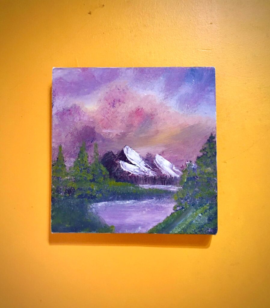 Mình rất thích thử nghiệm các cách vẽ bằng những dụng cụ khác nhau. Những chuyến đi trải nghiệm lên rừng, xuống biển cùng với cả nhà cho mình những ký ức để sử dụng chất liệu vẽ lại phong cảnh núi rừng cũng như biển cả! Bức núi rừng được vẽ từ miếng mút, còn bức biển được vẽ từ cọ sơn nhà, màu arcrylic! Cô gái thích vẽ ![]()