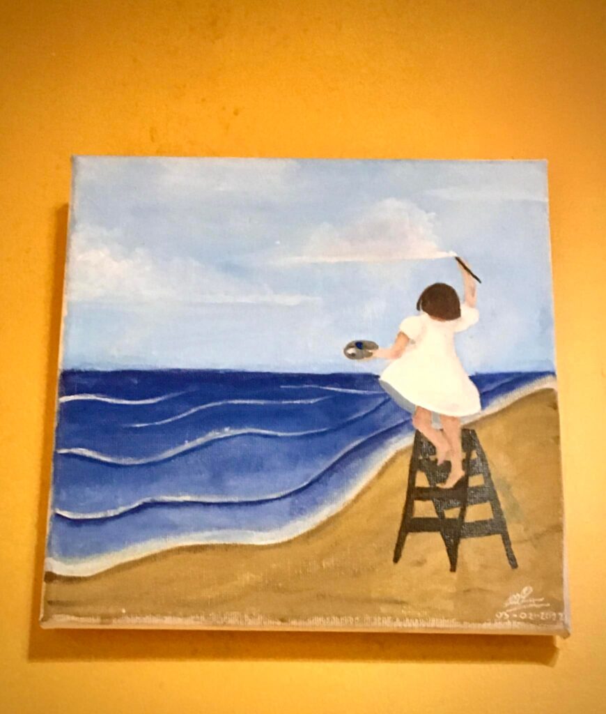 , the girl drawing cloud i used small paint brush, with acrylic! Who is the girl drawing cloud? ![]()