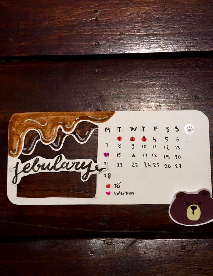Hôm qua mình check app “who is your Valentine?” Thì nó trả lời “next to you”! Lúc đó Mom đang nằm ngay cạnh mình, vậy mom chính là Valentine của mình :))). Đây là chiếc thiệp lịch tháng 2 mình dành tặng Valentine của mình đó ![]()